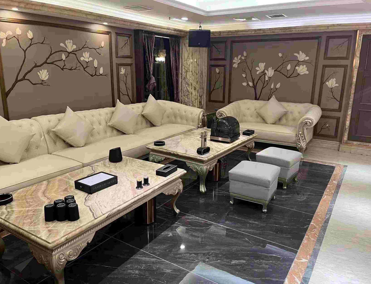 这家KTV装修风格融合法式浪漫与现代科技,全息投影设备打造沉浸式欢唱氛围,包厢设计独具特色,每间都有专属主题元素。虽地理位置稍偏,但凭借独特的主题风格与高品质体验,成为主题派对与高端聚会的热门选择。